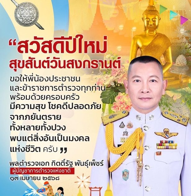 พลตำรวจเอก กิตติ์รัฐ พันธุ์เพ็ชร์ ผู้บัญชาการตำรวจแห่งชาติ ๑๓ เมษายน ๒๕๖๘ Post Views: 75
