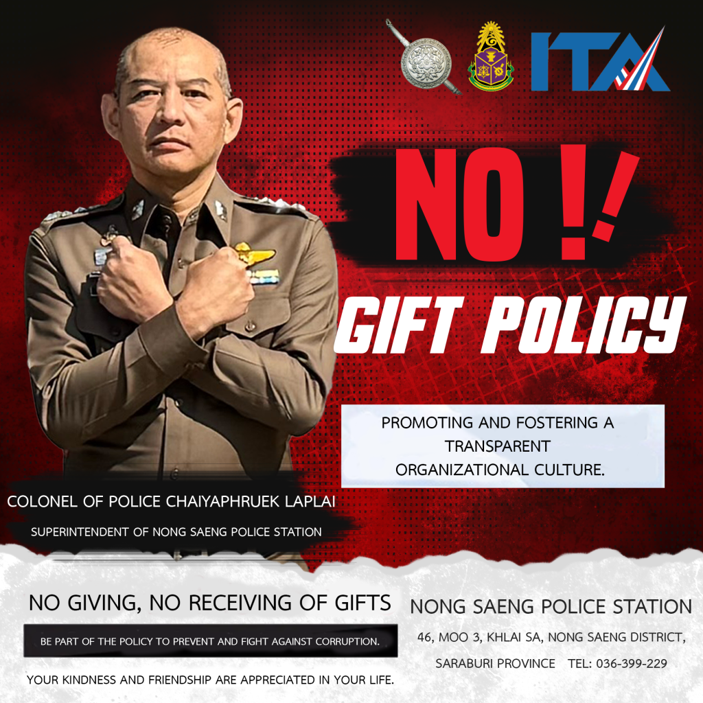 สภ.หนองแซง โดย พ.ต.อ.ชัยพฤกษ์ ลาภหลาย ผกก.สภ.หนองแซง งดรับงดให้ของขวัญ No !! Gift Policy มุ่งเสริม แ