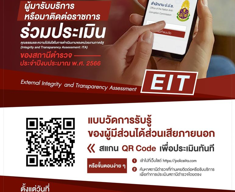 สภ.หนองแซง ขอเชิญผู้มารับบริการ หรือติดต่อราชการร่วมประเมิน คุณธรรมเเละความโปร่งใสในการดำเนินงานของหน่วยงานภาครัฐ ITA ของสถานีตำรวจประจำปีงบประมาณ 2566