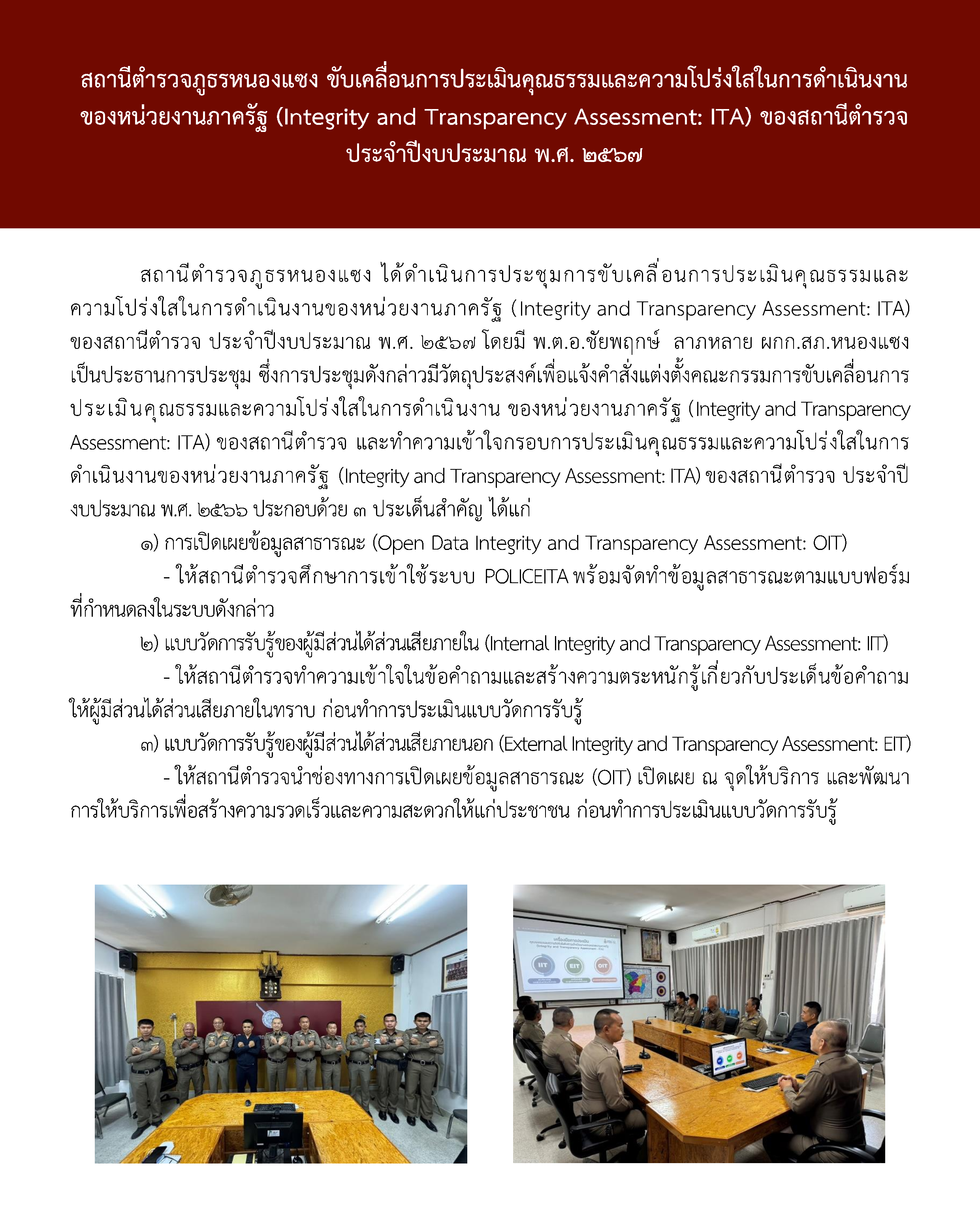 1. การประชาสัมพันธ์ข้อมูลการดำเนินงานของสถานีตำรวจ ประจำปีงบประมาณ 2567