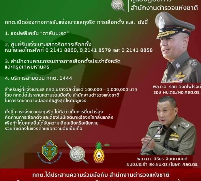 ศูนย์อำนวยการรักษาความปลอดภัยและความสงบเรียบร้อยการจัดการเลือกตั้ง สำนักงานตำรวจแห่งชาติ ขอประชาสัมพันธ์