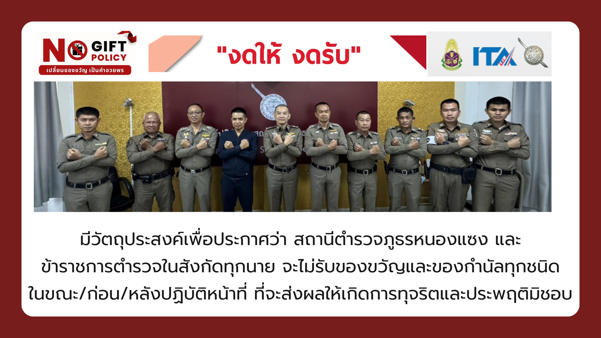 งดรับงดให้ของขวัญ No !! Gift Policy 28 กุมภาพันธ์ 2568 สภ.หนองแซง โดย พ.ต.อ.ชัยพฤกษ์ ลาภหลาย ผกก.สภ.หนองแซง งดรับงดให้ของขวัญ No !! Gift Policy มุ่งเสริม แ Read more