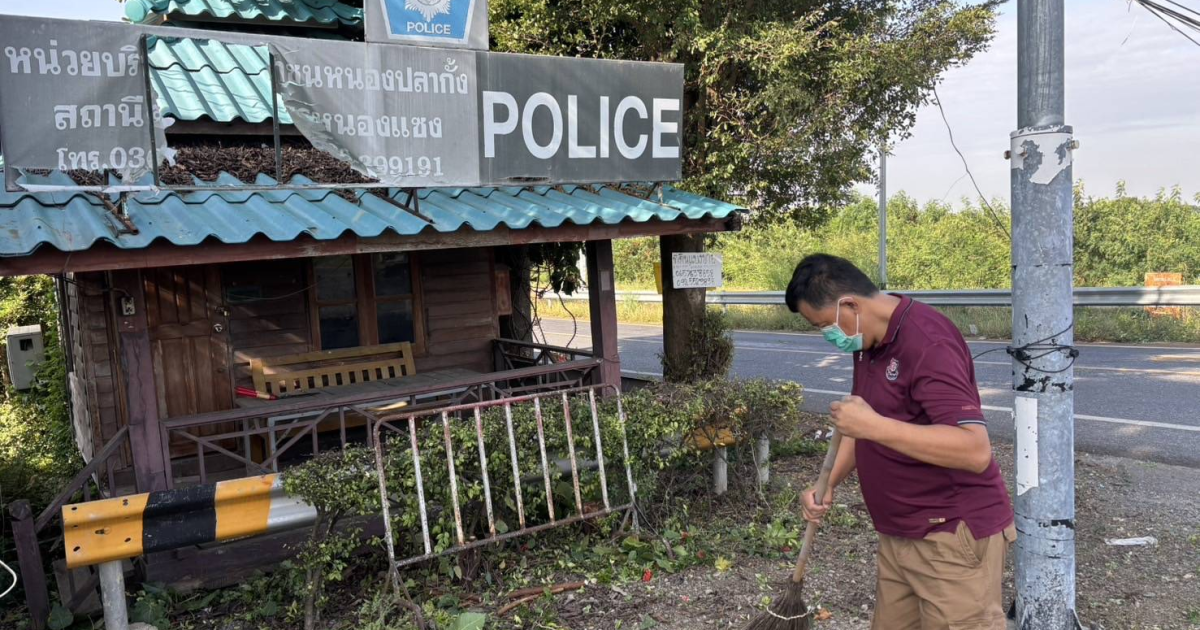 ร.ต.อ.ไวพจน์ บำบัติภัย รอง สวป.สภ.หนองแซง (หน.ต.01) พร้อมด้วย ร.ต.ท.เทพมงคล แก้วเคนรอง สว.(ป)สภ.หนองแซงว.4 กิจกรรม 5 ส.ตู้ยาม ต.01