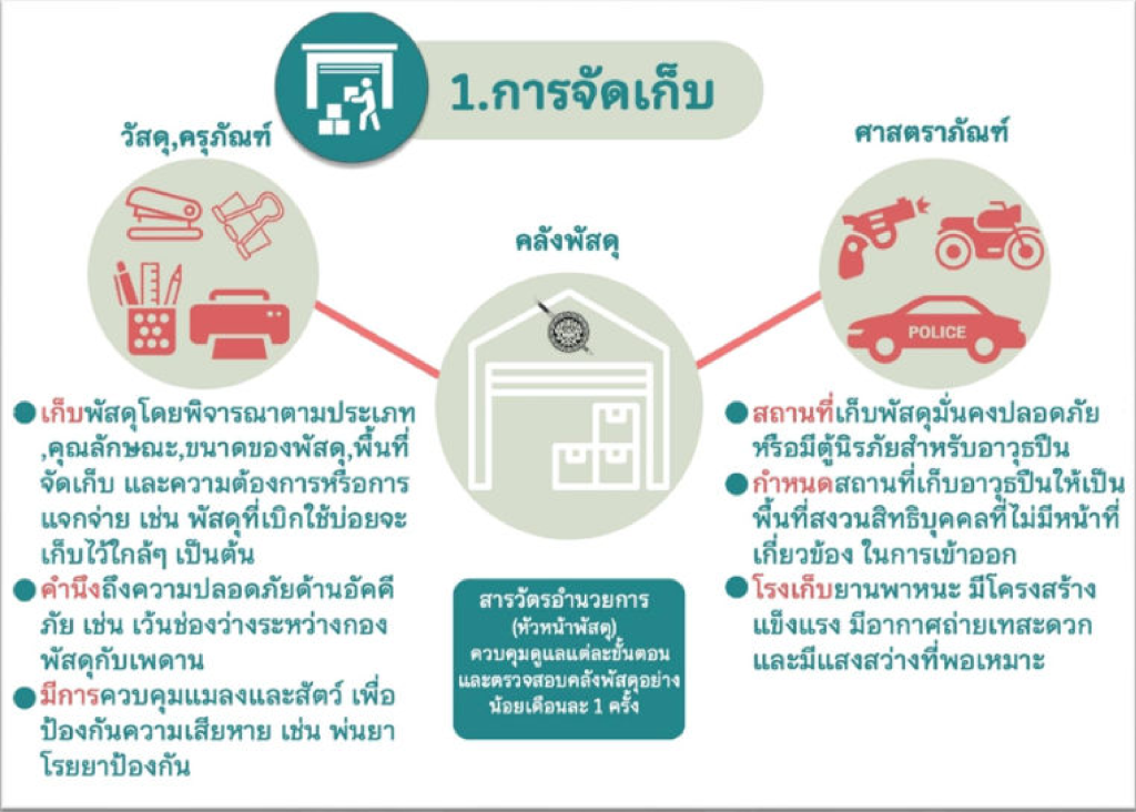กำหนดแนวทางควบคุม กำกับ ดูแลรักษา ตรวจนับ ตรวจสอบสภาพการใช้งานทรัพย์สินของราชการ และของบริจาค โดยเฉพาะทรัพย์ประเภทที่มีความเสี่ยงต่อการนำไปใช้โดยมิชอบ ตรวจสอบและตรวจนับอาวุธยุทธภัณฑ์ของสถานีตำรวจเพื่อให้มีความพร้อมต่อการใช้งานในภารกิจประจำวัน