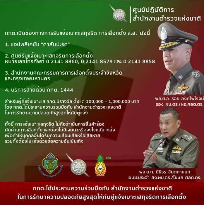 ศูนย์อำนวยการรักษาความปลอดภัยและความสงบเรียบร้อยการจัดการเลือกตั้ง สำนักงานตำรวจแห่งชาติ ขอประชาสัมพ